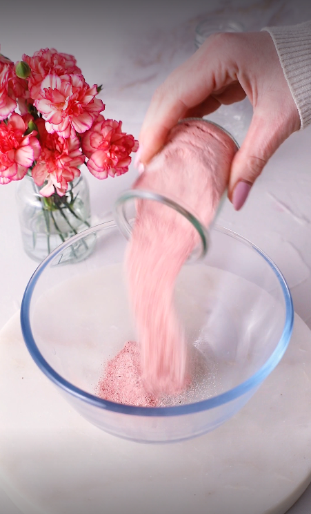 - Gib 250 ml frisch abgekochtes, heißes Wasser zu der Mischung und rühre, bis sie sich aufgelöst hat.